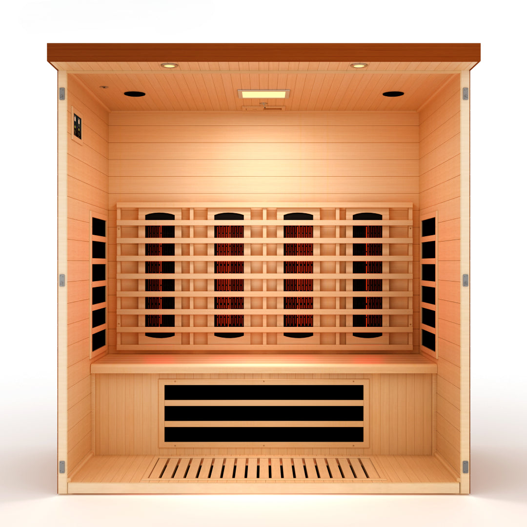 The Dynamic Vila Grande is a flagship 4-person infrared sanctuary designed for families who want the benefits of a large-capacity sauna with the convenience of a "Plug & Play" setup. As part of the New 2026 Model lineup, the Vila Grande features clinical-grade Full Spectrum technology, providing Near, Mid, and Far infrared wavelengths. Handcrafted from eco-friendly Canadian Hemlock, this model is engineered for rapid heating and deep-tissue penetration while maintaining industry-leading safety standards for electromagnetic fields.