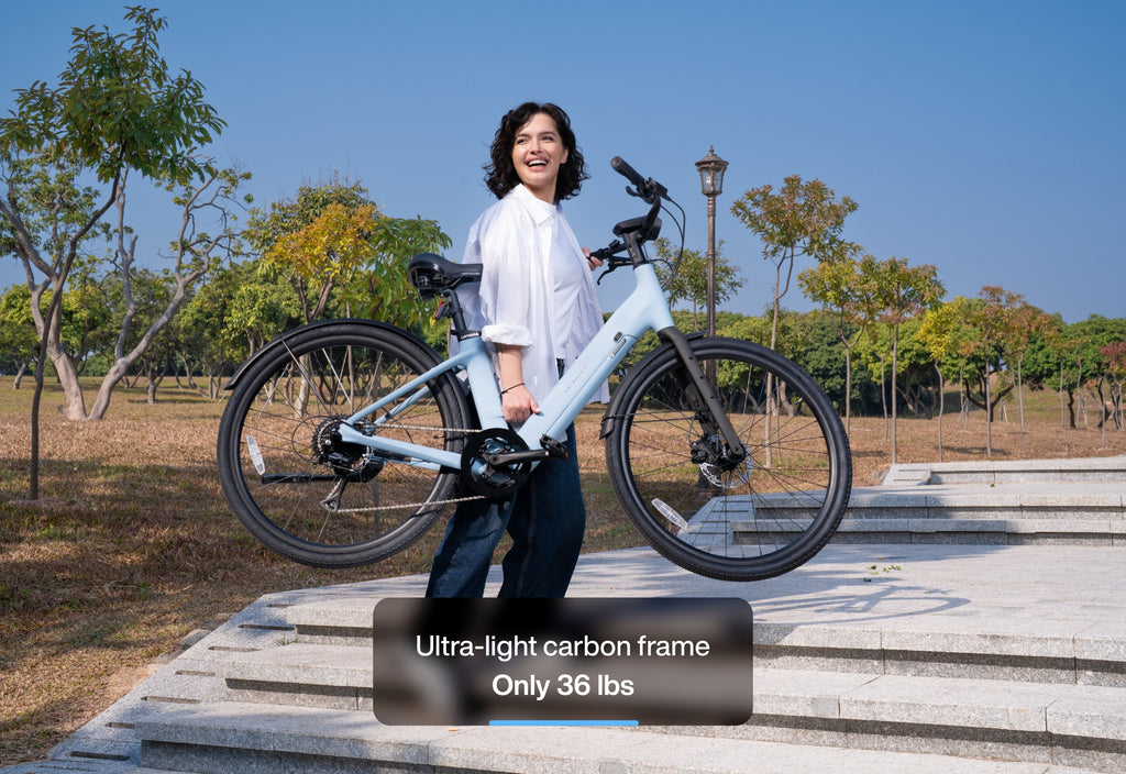 Built with Toray carbon fiber, renowned for its use in Formula 1 and by leading bicycle manufacturers, the Carbon 1 Step-thru ebike features an innovative low-step frame that not only elevates the bike’s sleek design but also ensures a smooth, reliable, and long-lasting ride. Carbon fiber e-bikes are 50% lighter than aluminum ebikes, only 36 lbs. making it easier to handle and ride. Its reduced weight allows for quicker acceleration, easier uphill climbs, and smoother turns. Whether commuting through the city or exploring trails, the lightweight design ensures less fatigue and greater control. Enjoy!